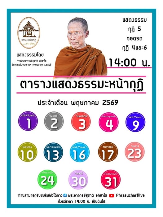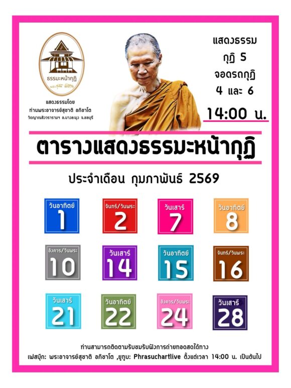 หมายเหตุ : ขอความกรุณางดเข้าพบพระอาจารย์นอกเหนือจากเวลาดังกล่าว