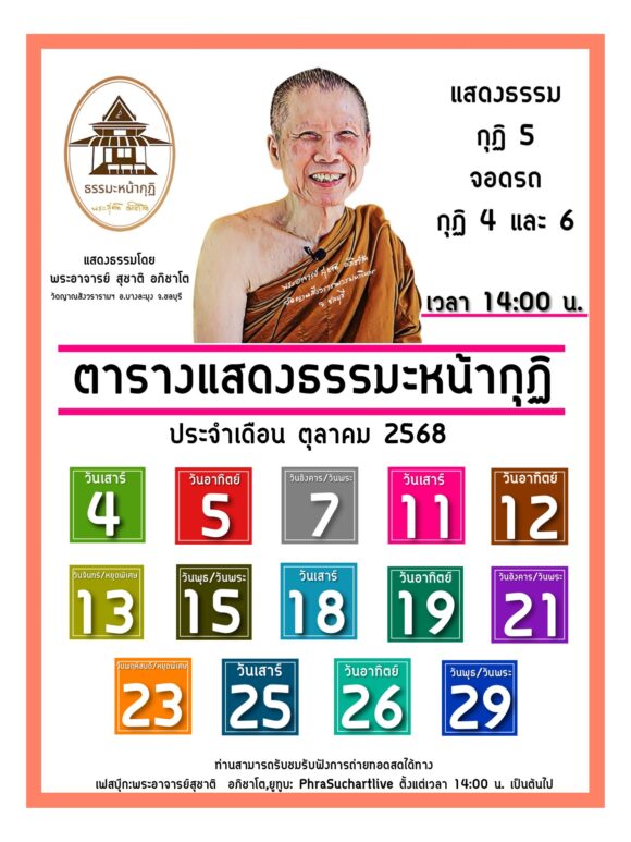 แสดงธรรมหน้ากุฏิ ในวันเสาร์-อาทิตย์ วันพระ และวันหยุดนักขัตฤกษ์